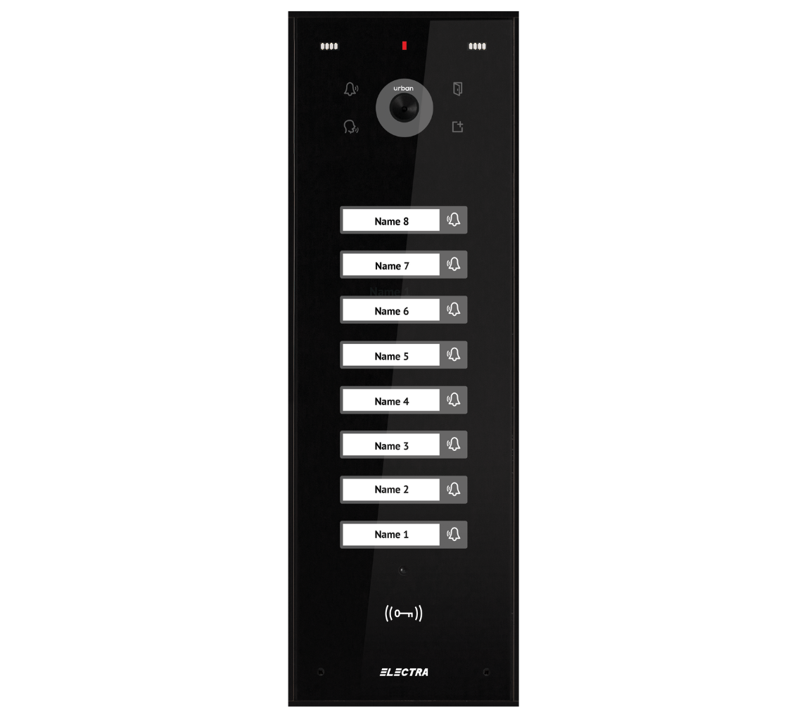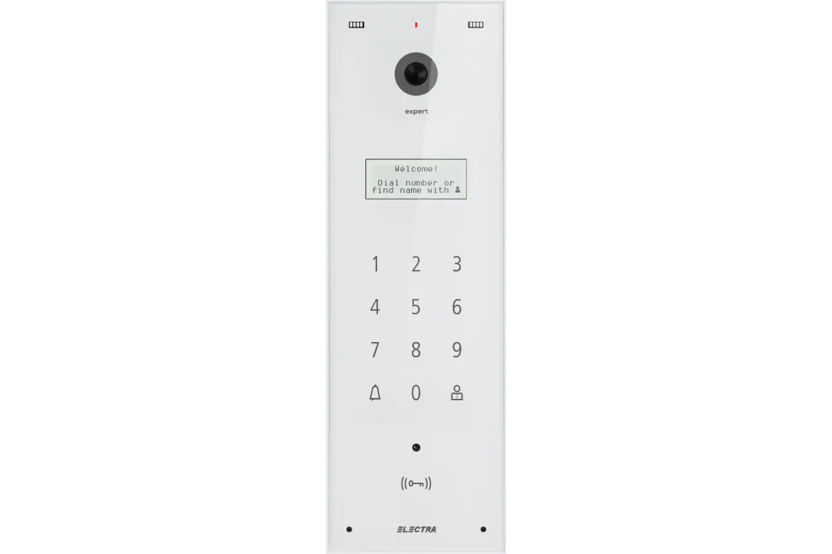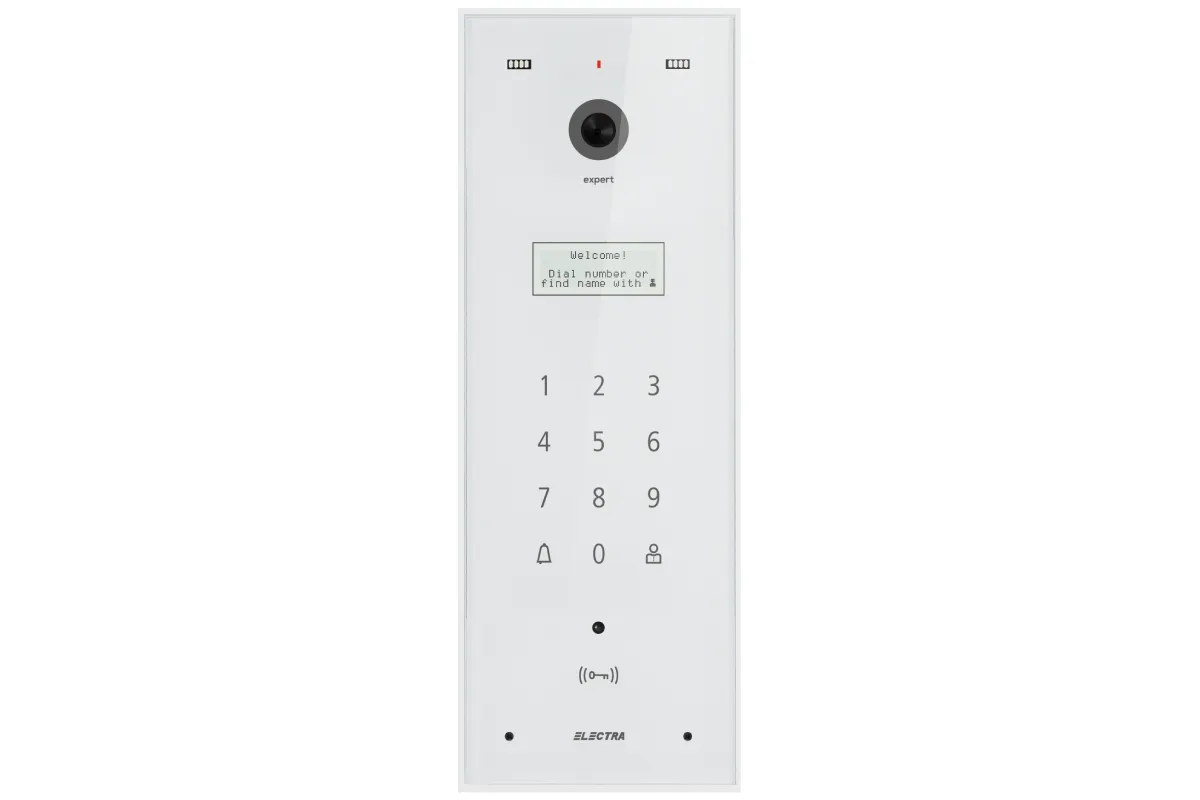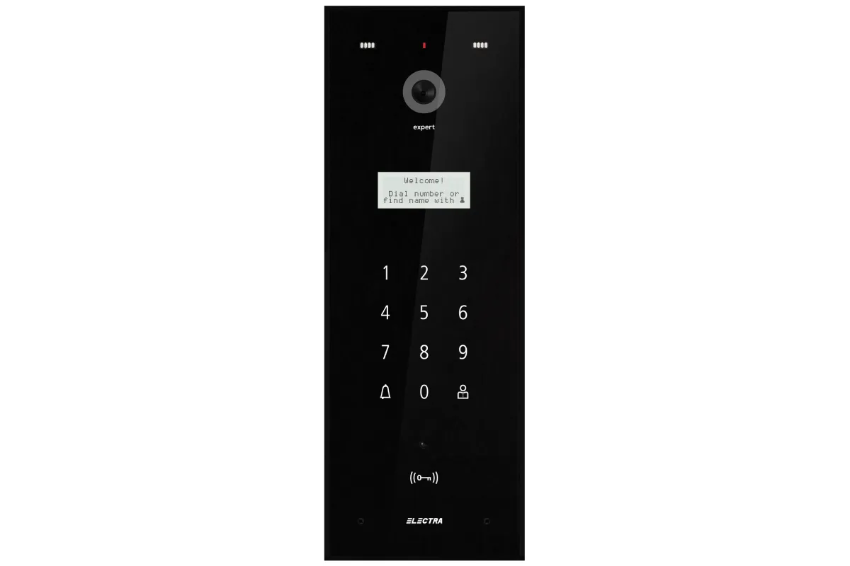 Panou Video Expert BLOCURI Max. 255 apartamente, ecran sticla, carcasă Aluminiu IP44, tastatură touch iluminată.