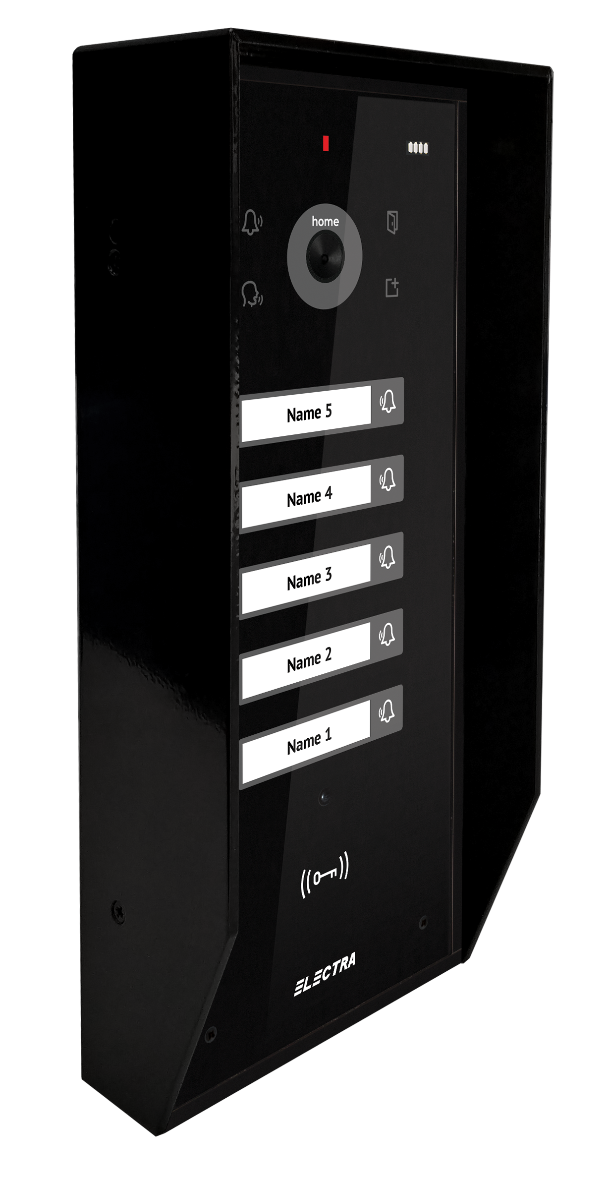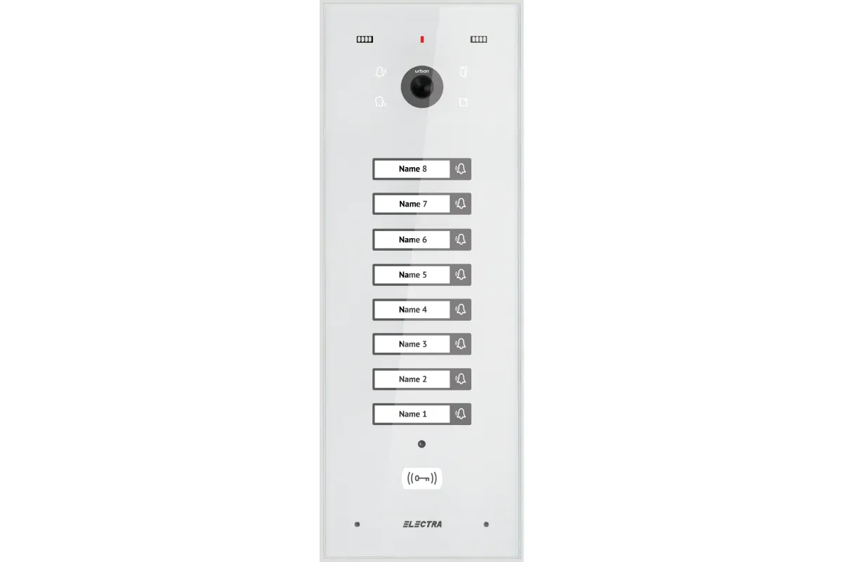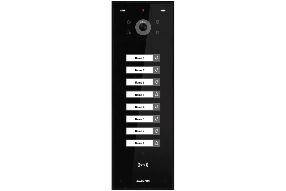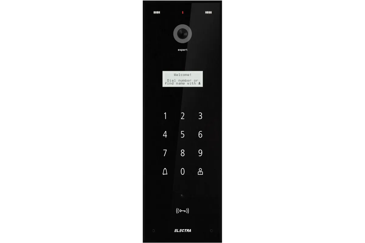 Panou Video Expert BLOCURI Max. 255 apartamente, ecran sticla, carcasă Aluminiu IP44, tastatură touch iluminată.