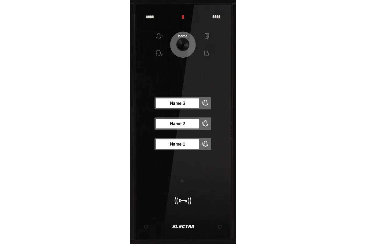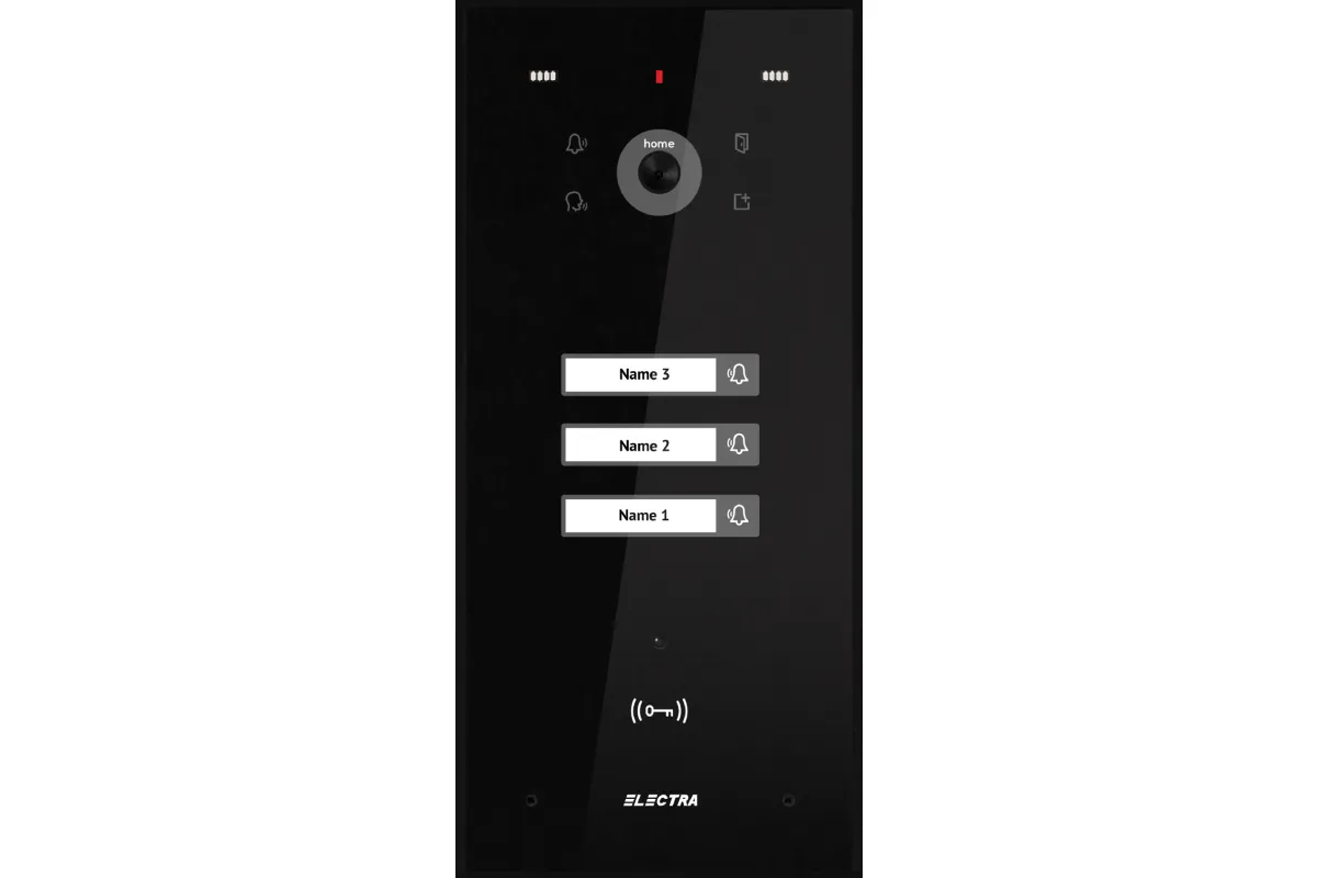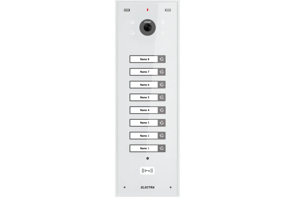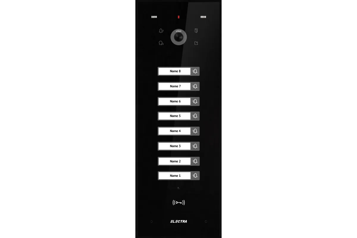 Panou Video Expert BLOCURI Max. 255 apartamente, ecran sticla, carcasă Aluminiu IP44, tastatură touch iluminată.