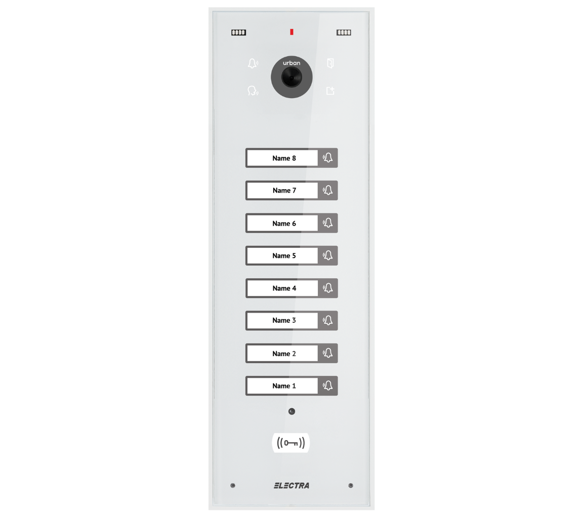 Carcasă din INOX, display electronic pentru listă locatari și afișare status utilizare, tastatură clasică iluminată, acces cu card RFID.